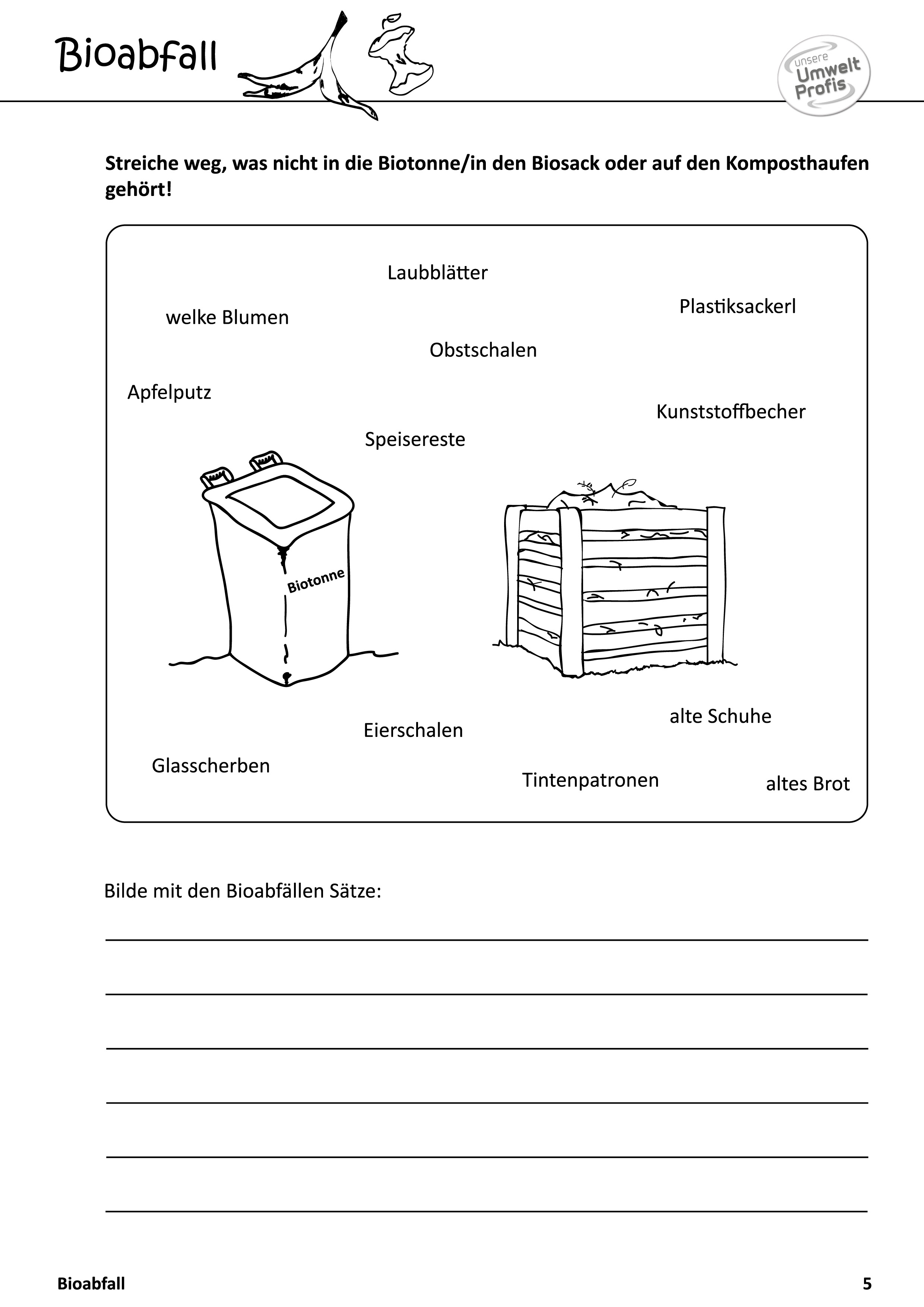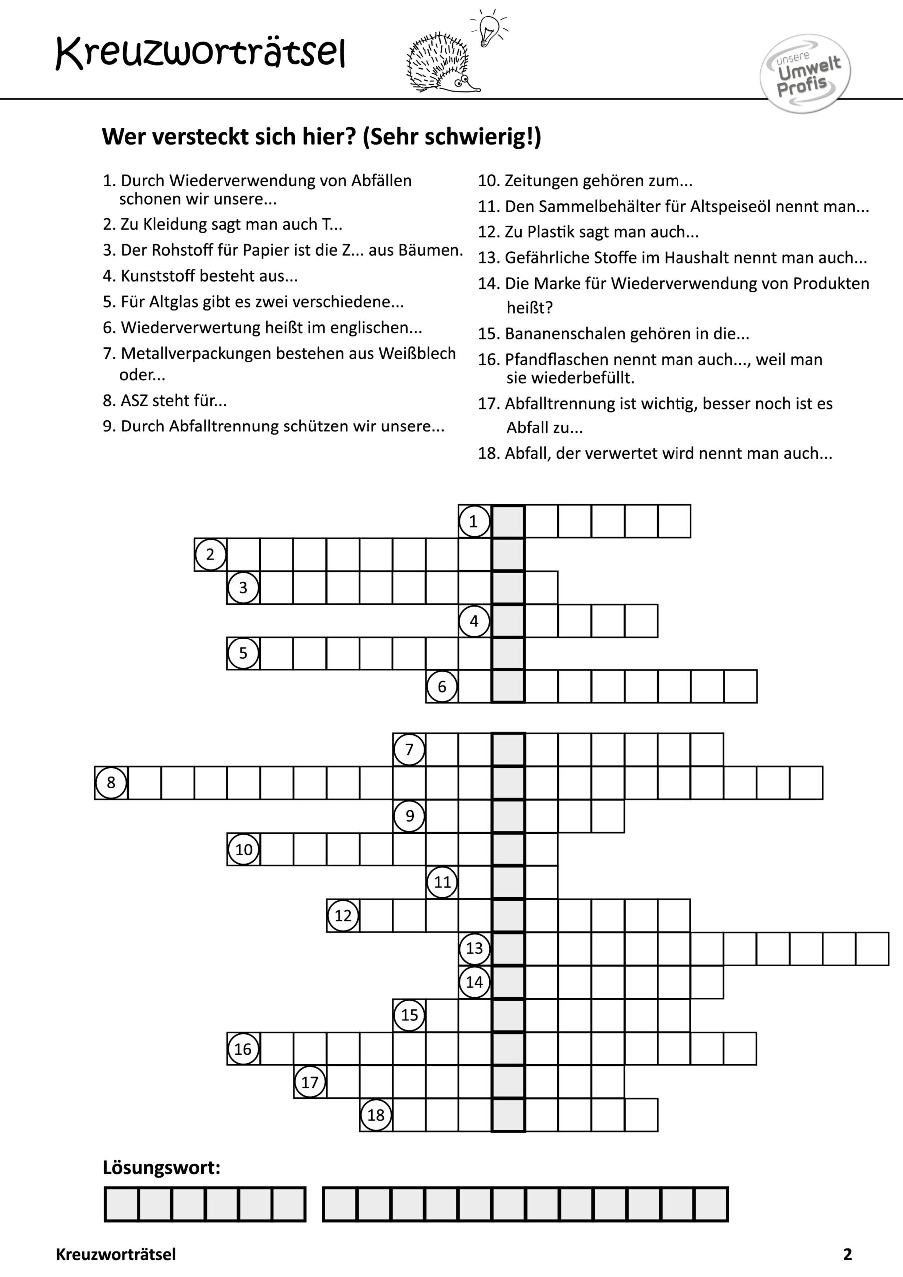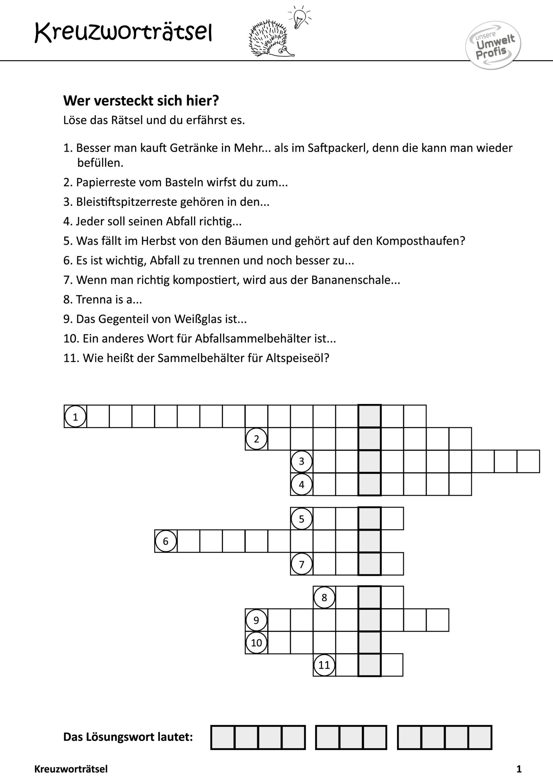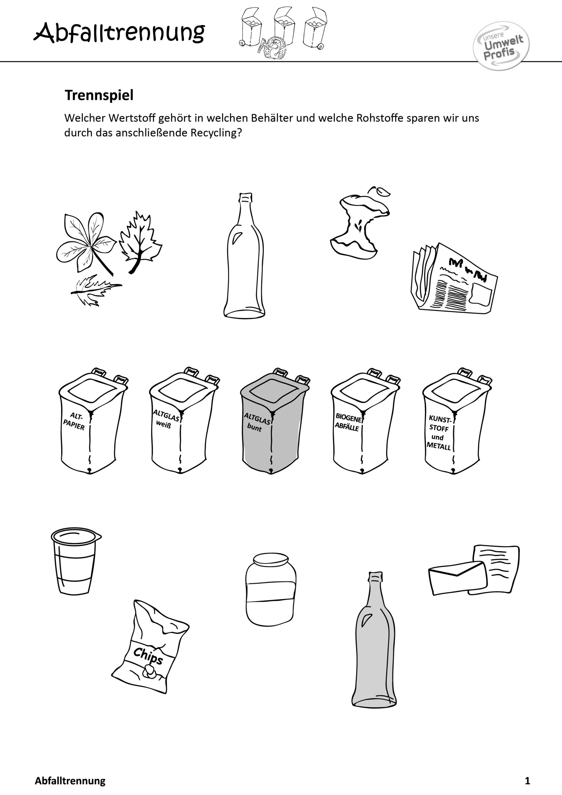 Arbeitsblätter und Rätsel (mit Lösungen) zu Abfallthemen für die Unterstufe