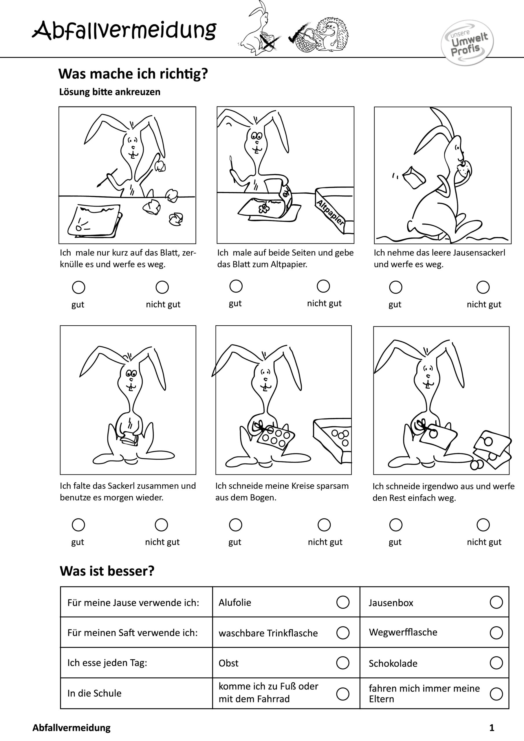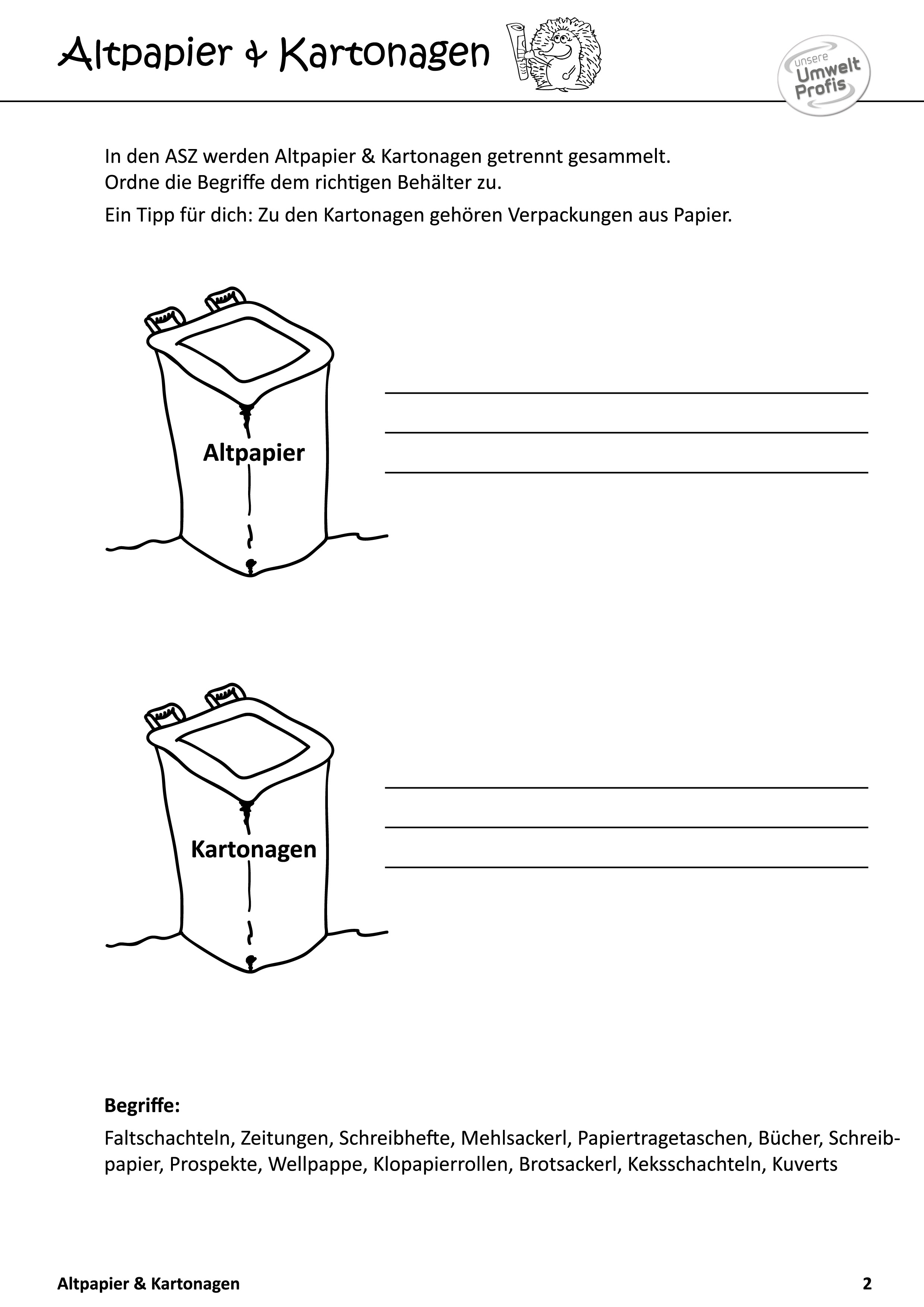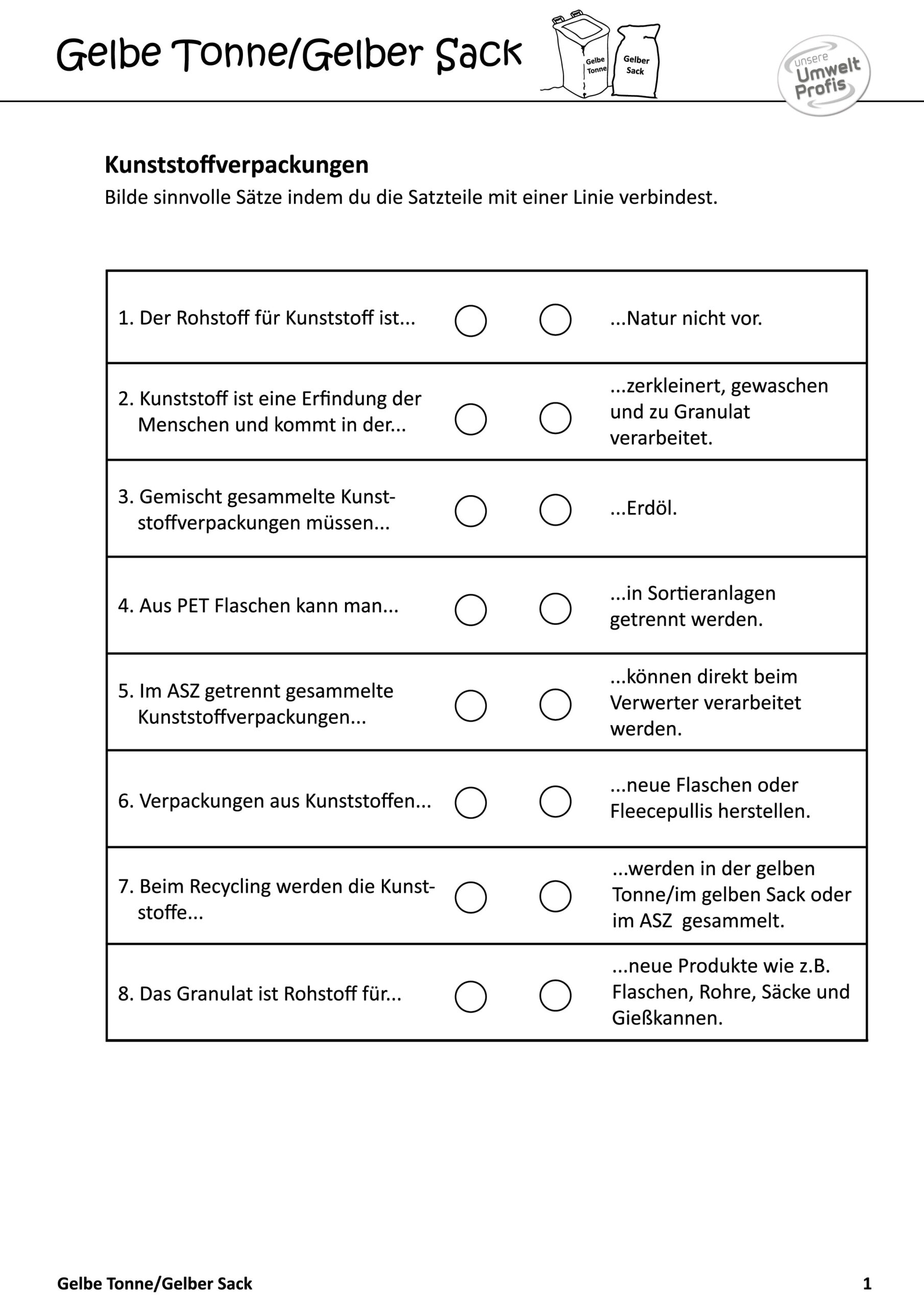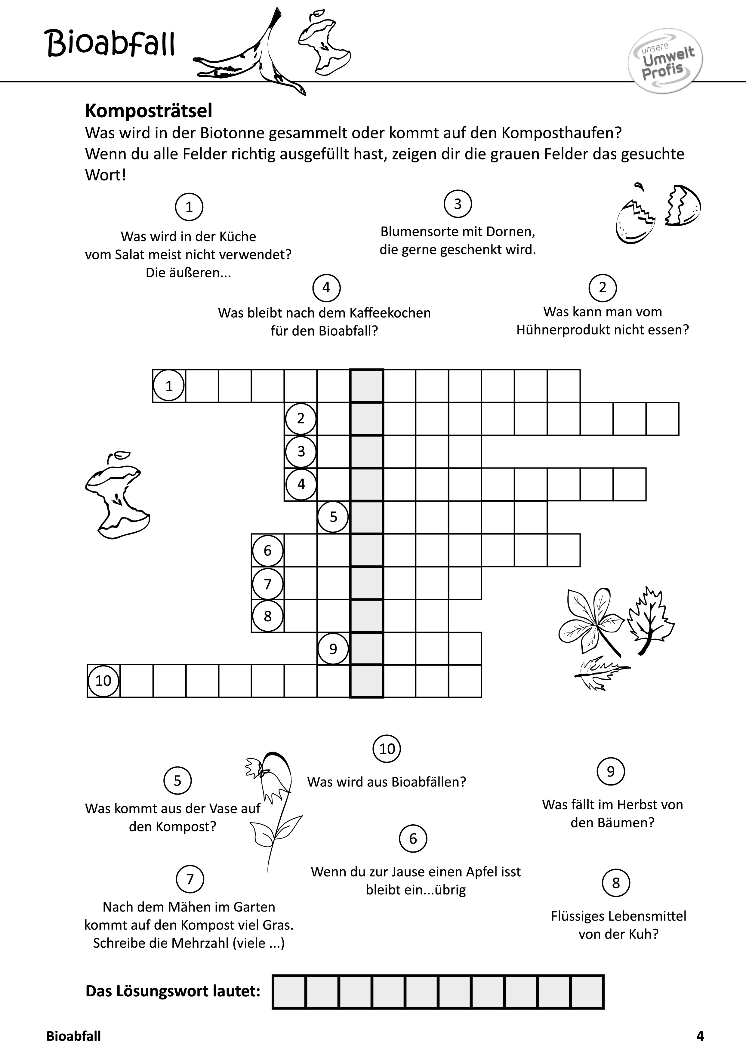 Arbeitsblätter und Rätsel (mit Lösungen) zu Abfallthemen für die Unterstufe