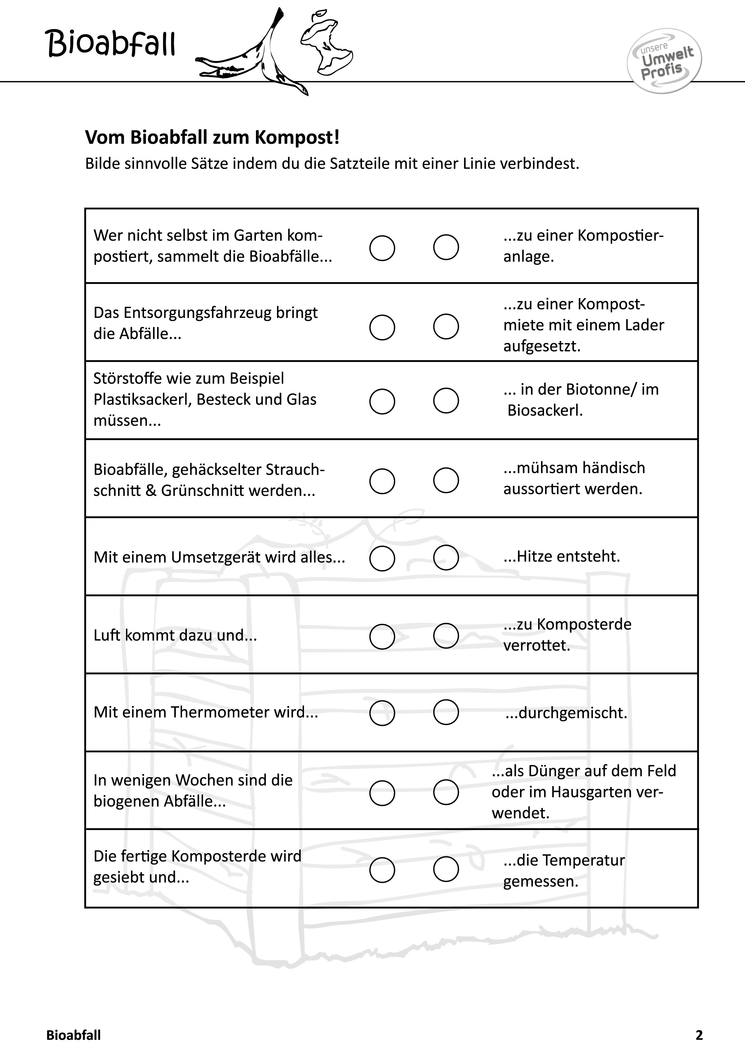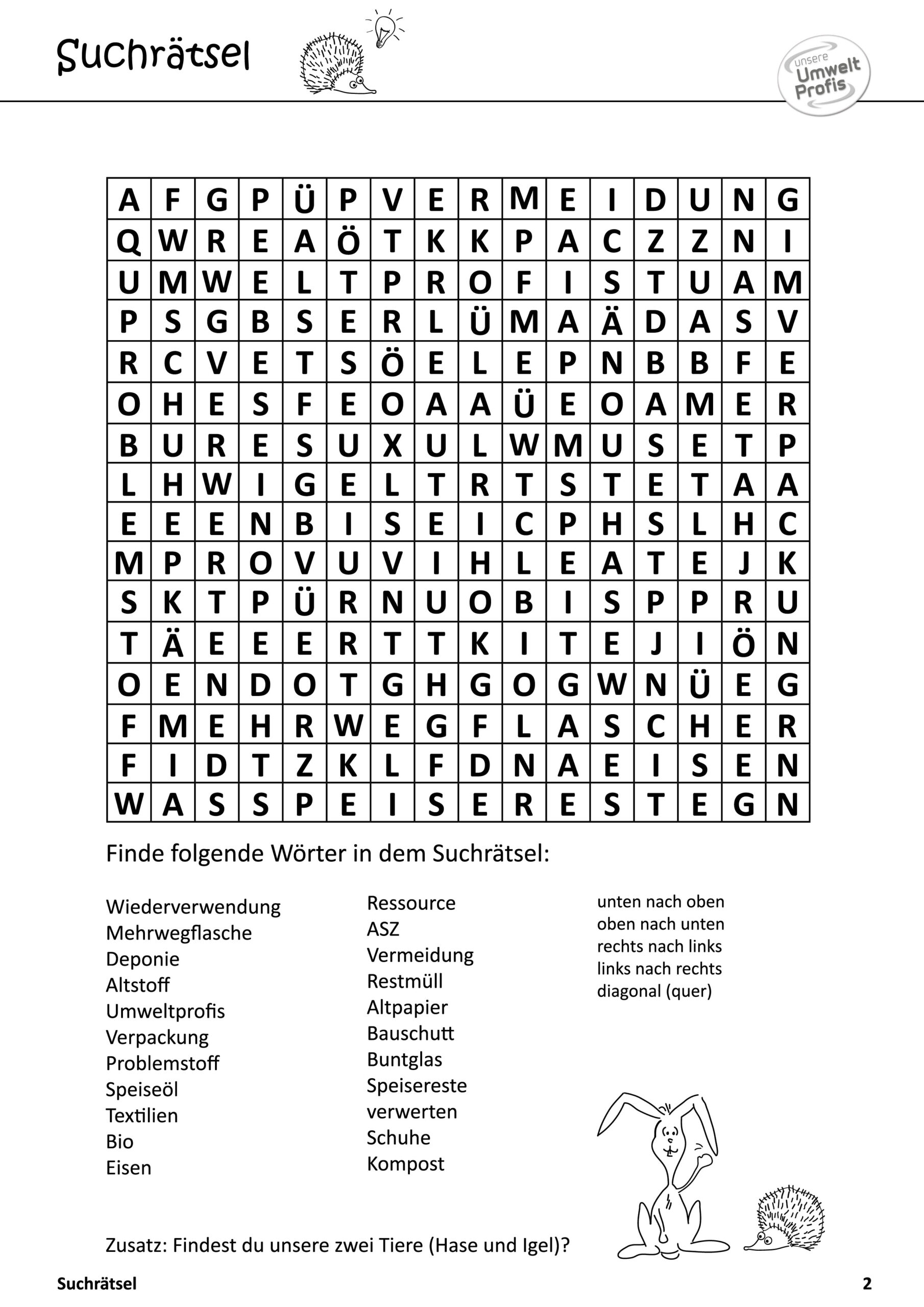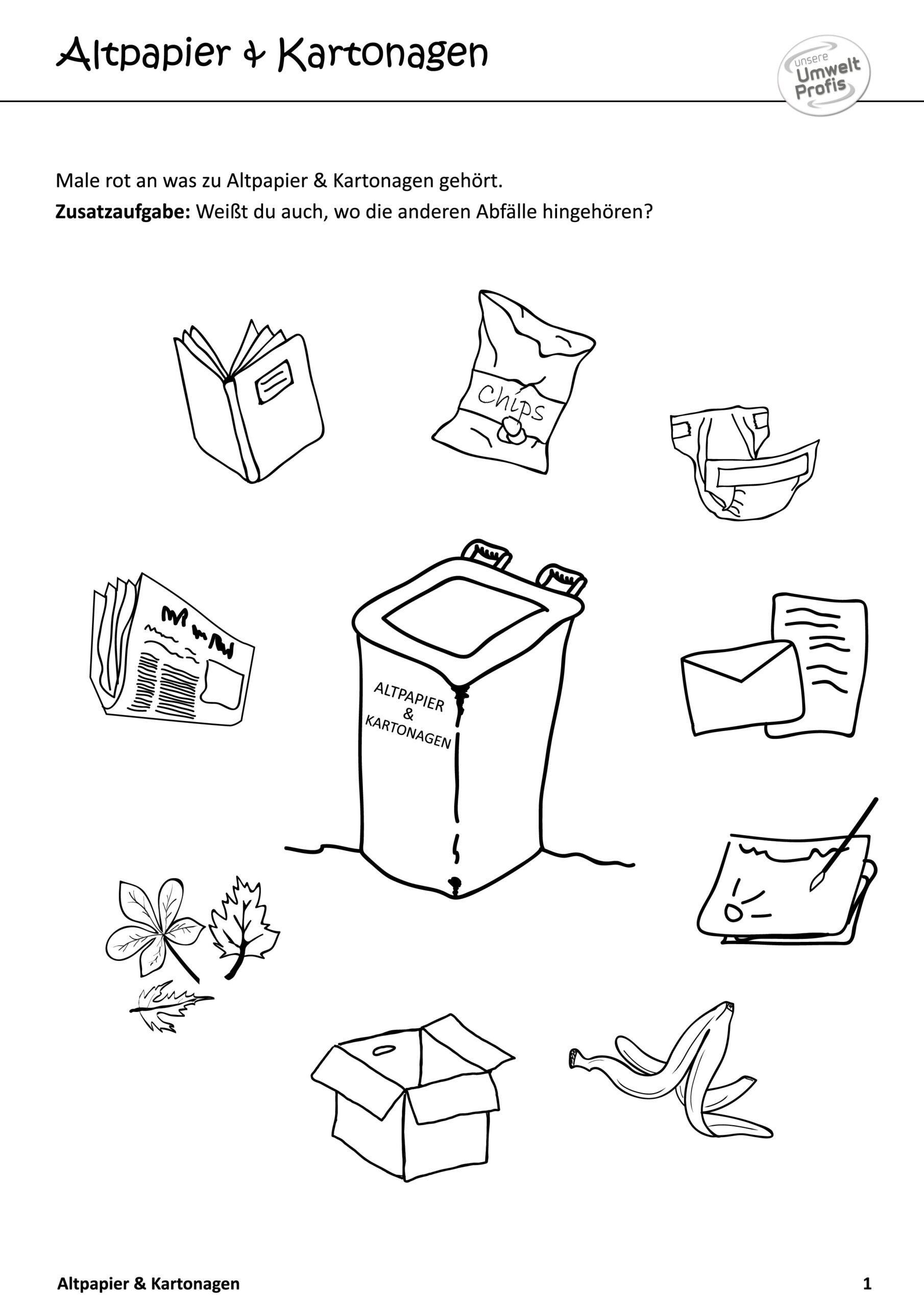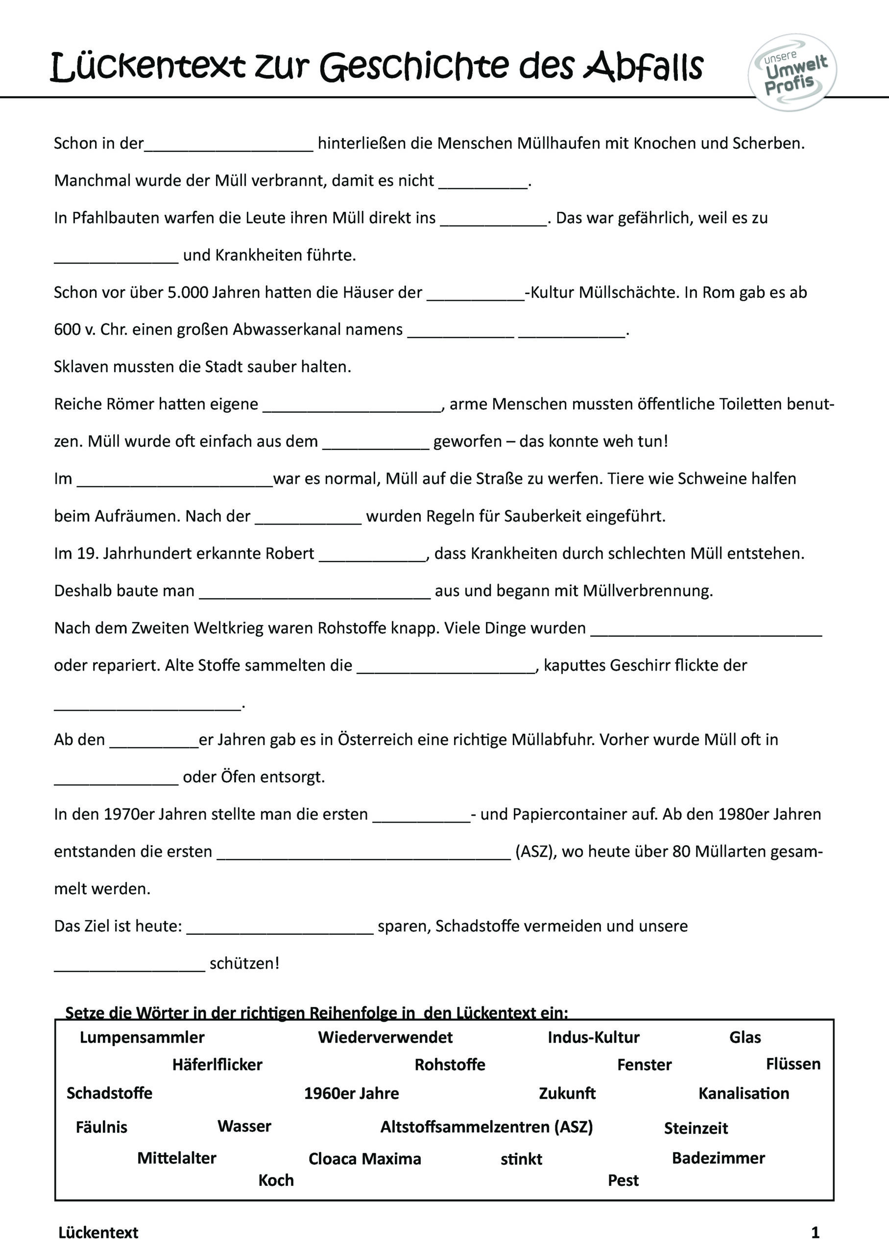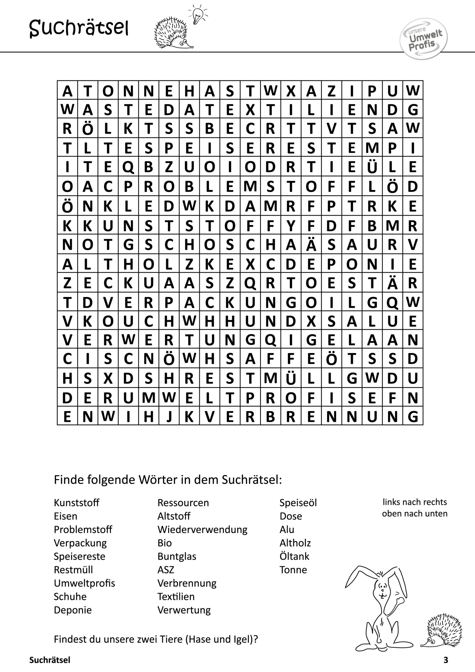 Arbeitsblätter und Rätsel (mit Lösungen) zu Abfallthemen für die Unterstufe