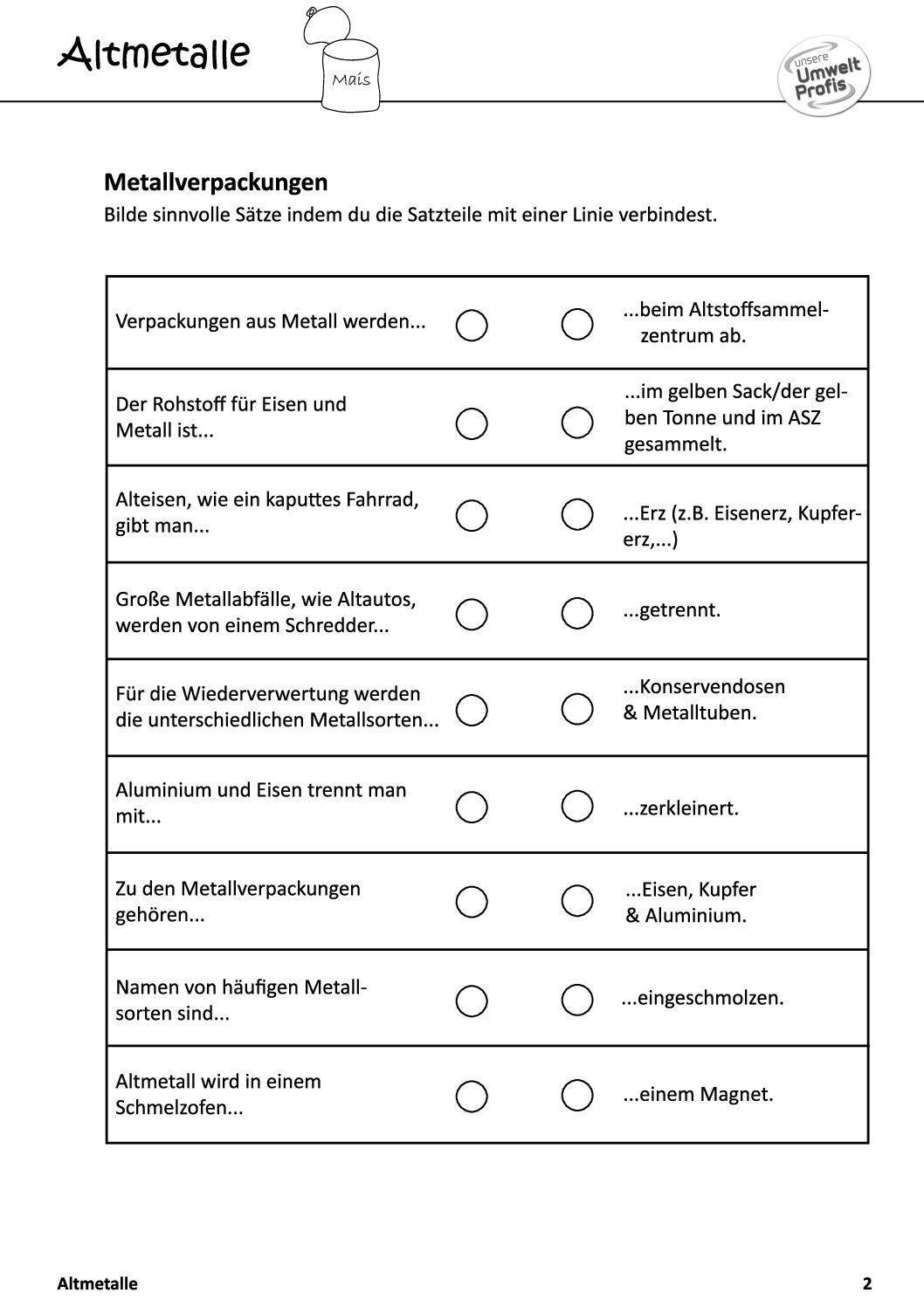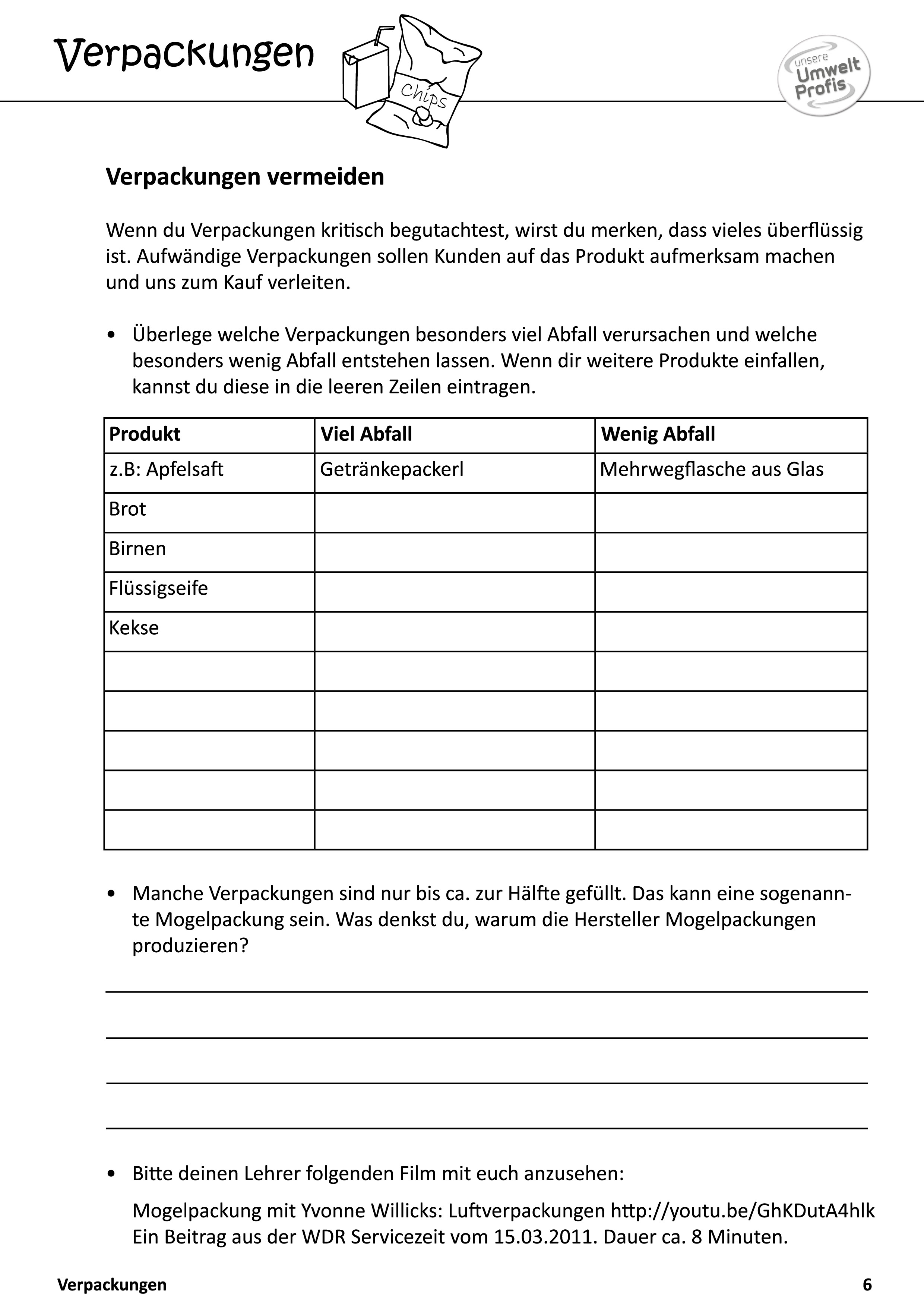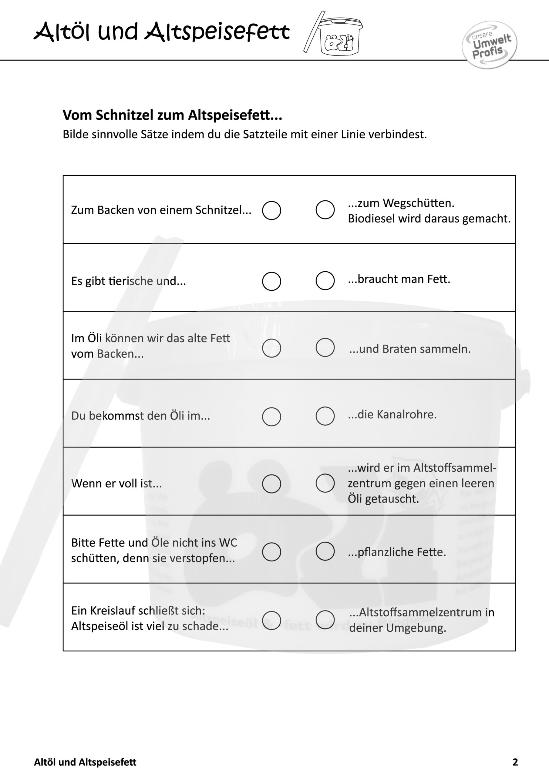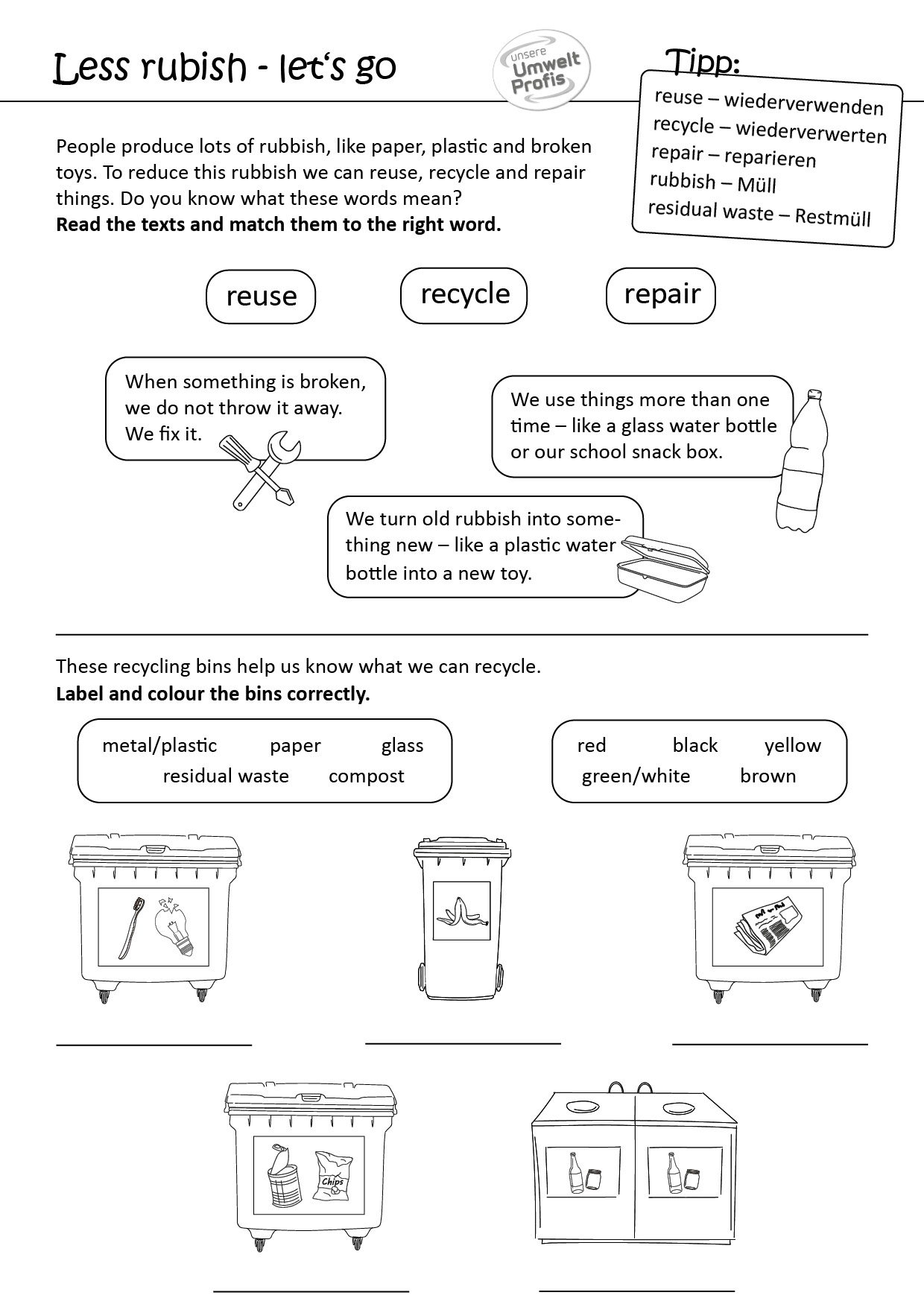 Arbeitsblätter und Rätsel (mit Lösungen) zu Abfallthemen für die Unterstufe