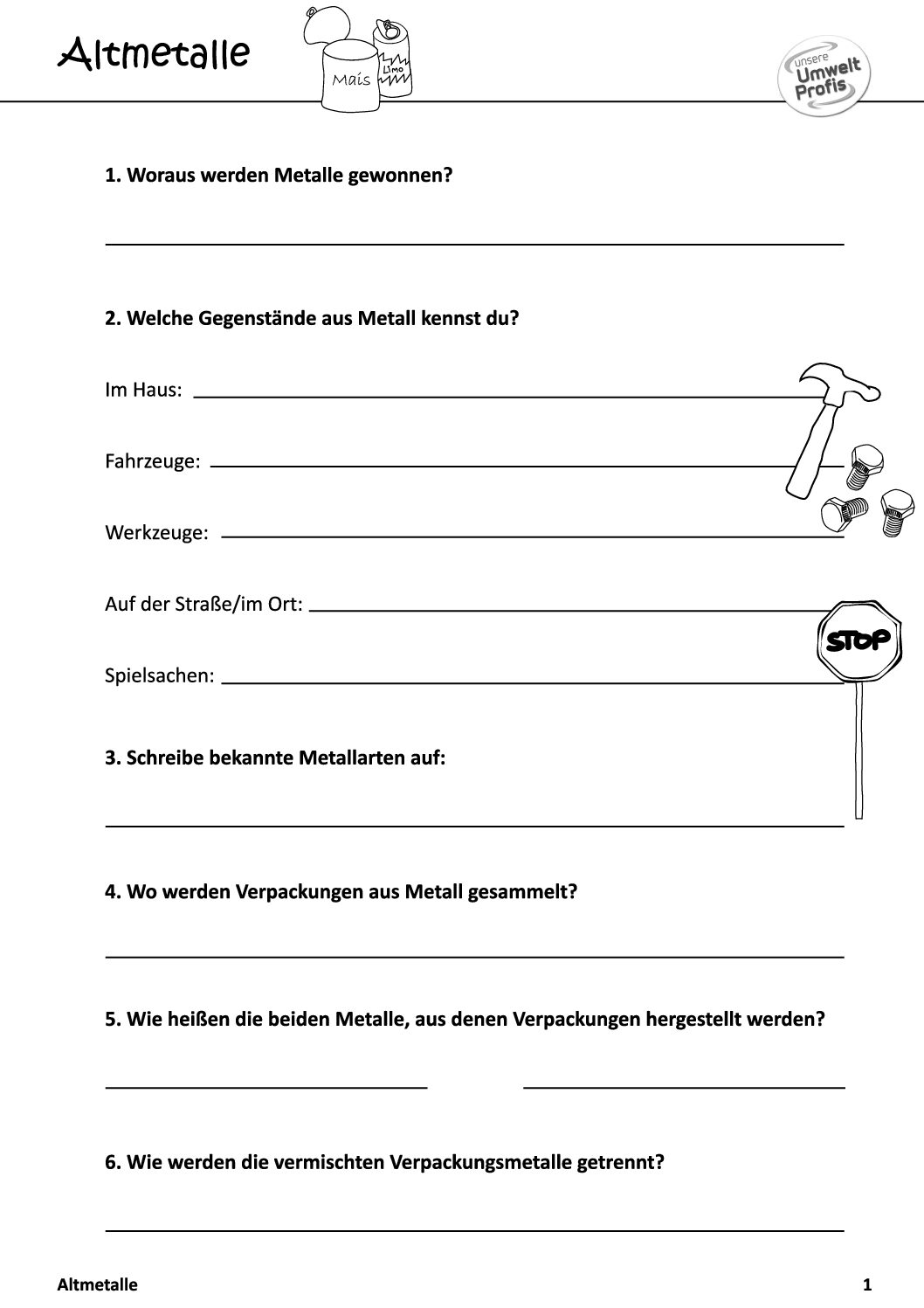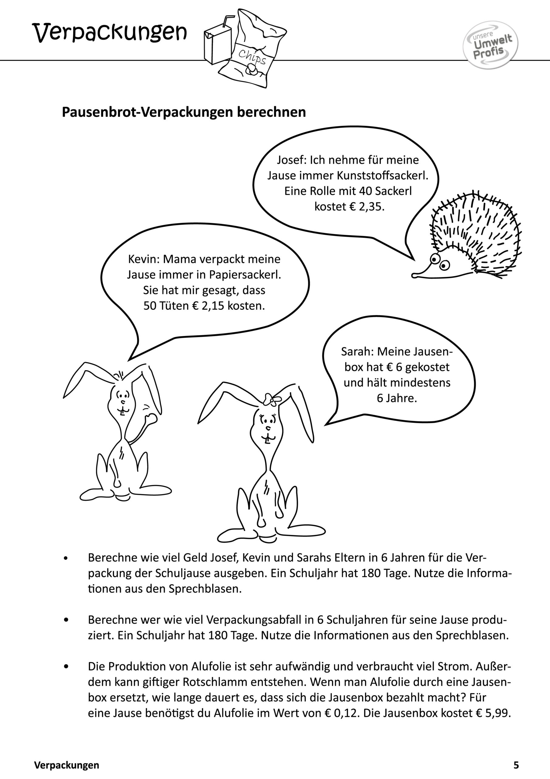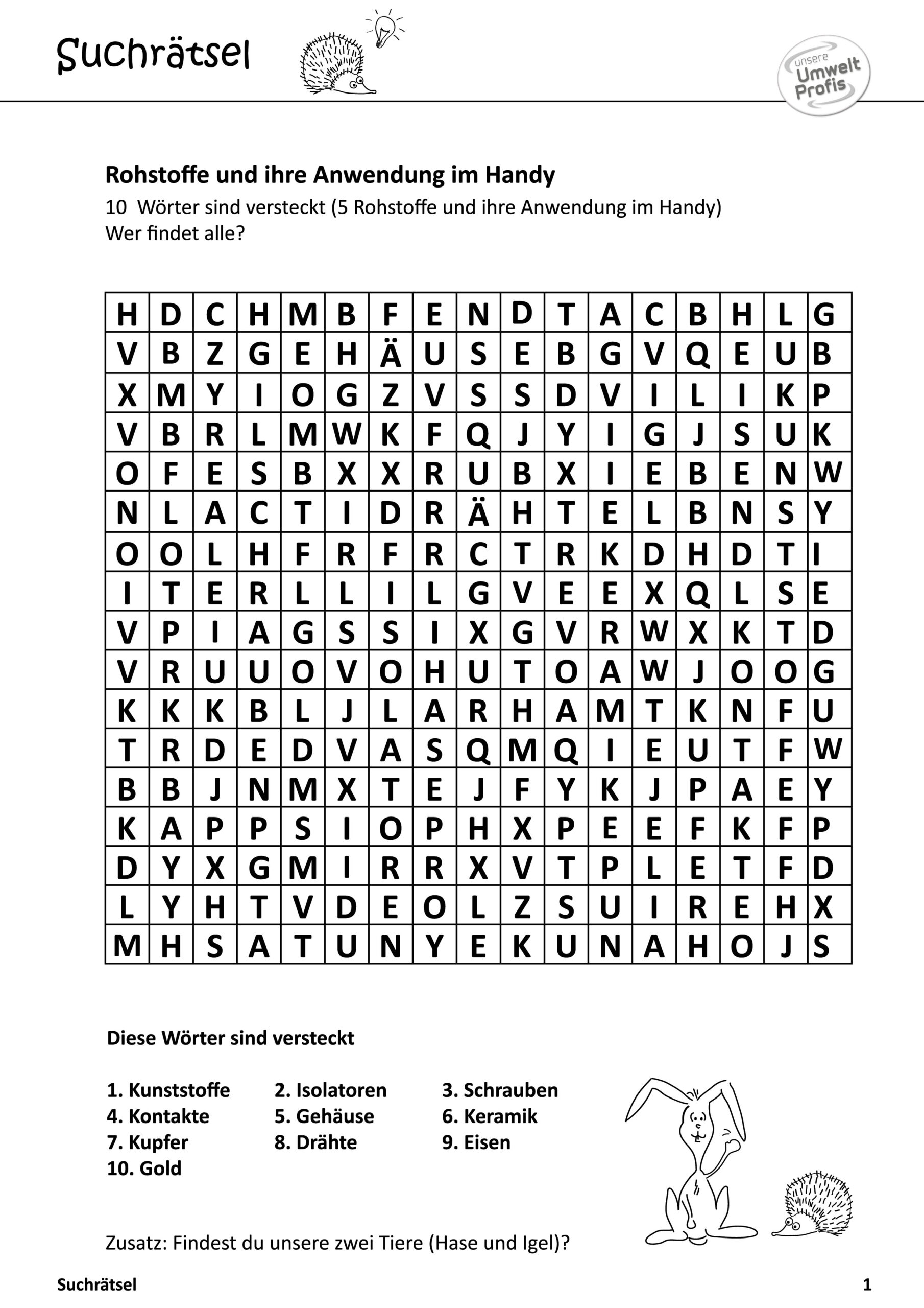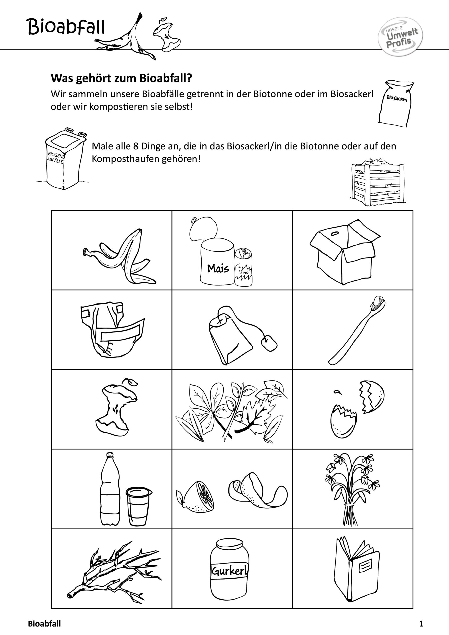 Arbeitsblätter und Rätsel (mit Lösungen) zu Abfallthemen für die Unterstufe