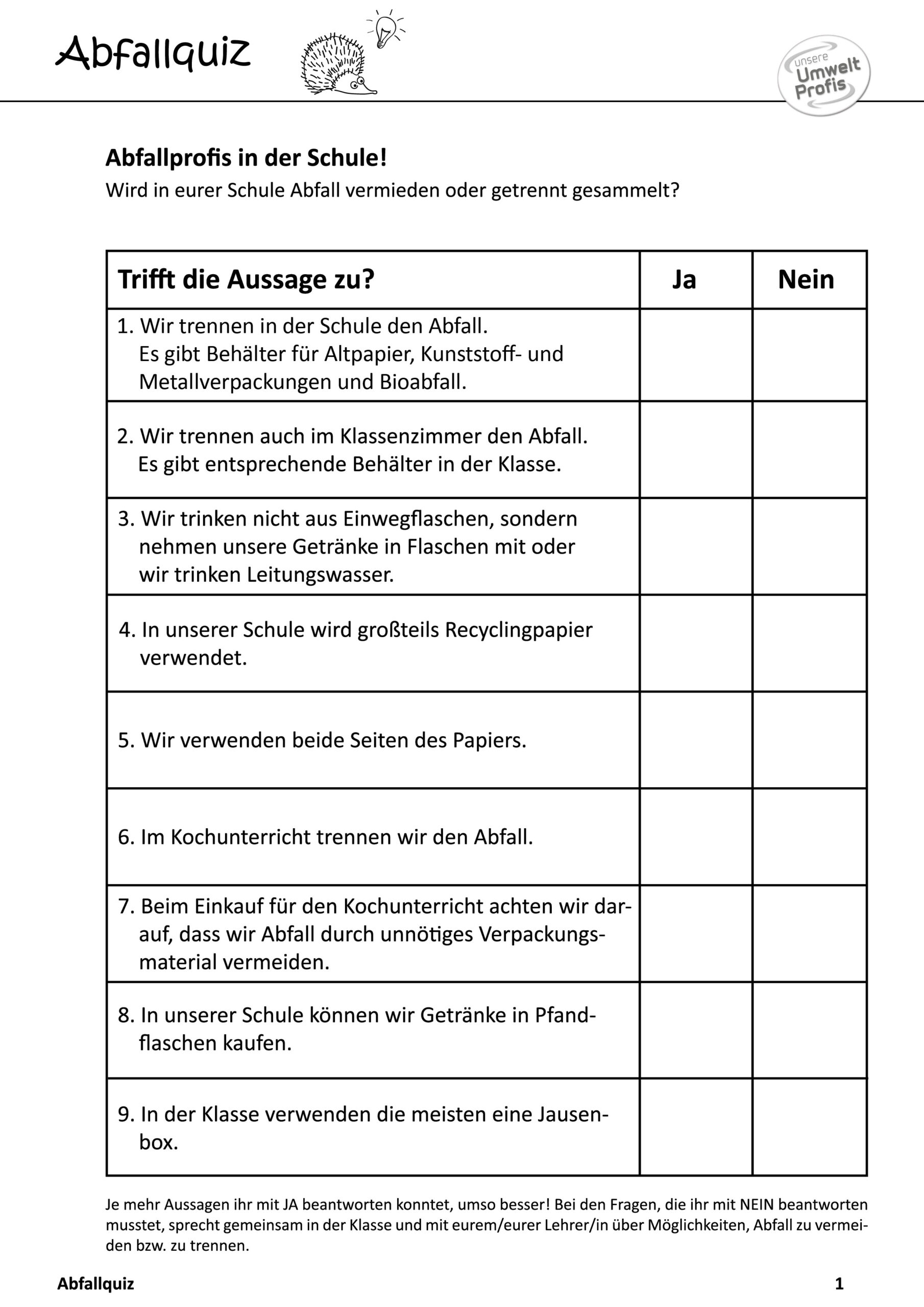 Abfallquiz – Abfallprofis in der Schule