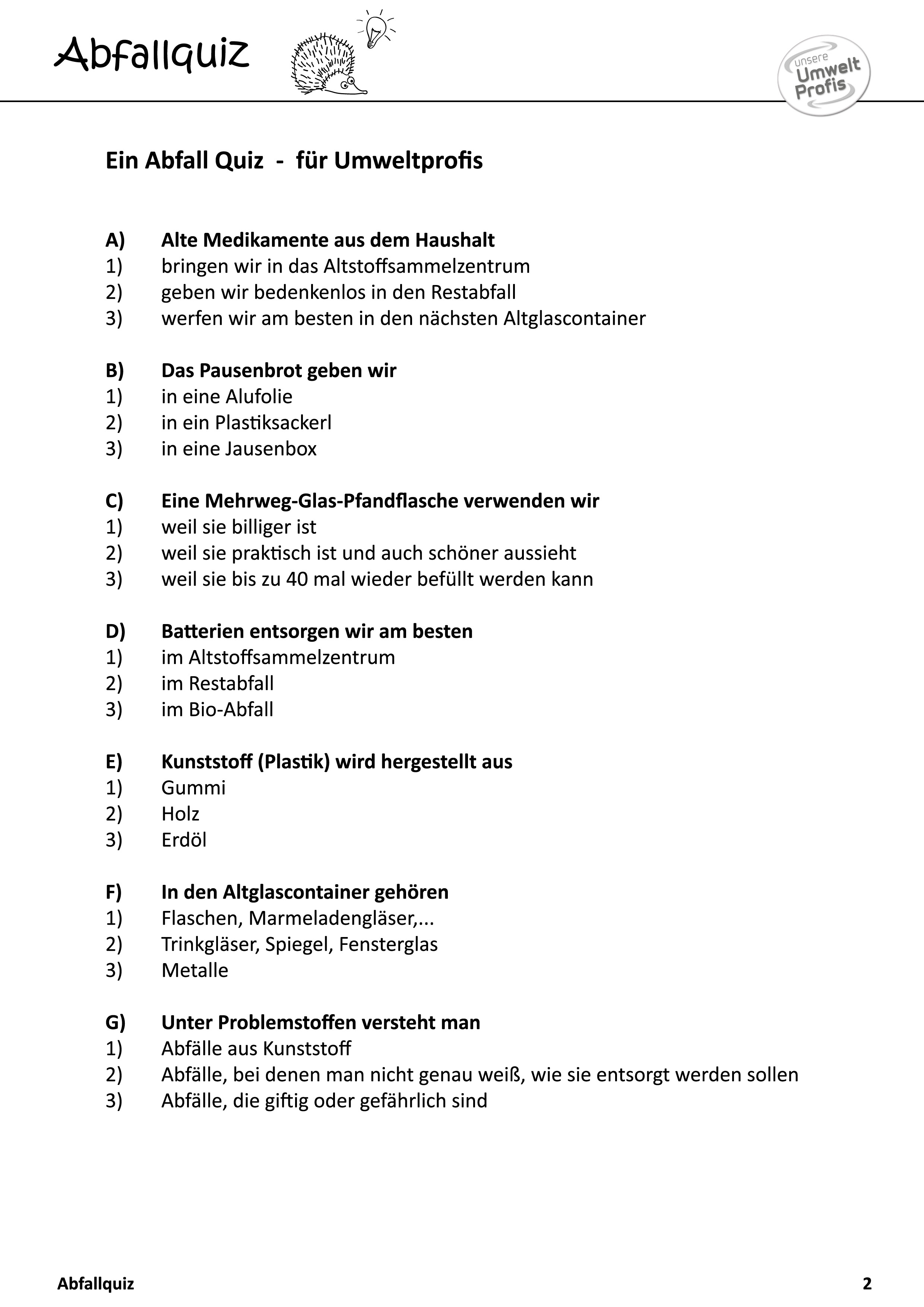 Abfallquiz für Umwelt Profis